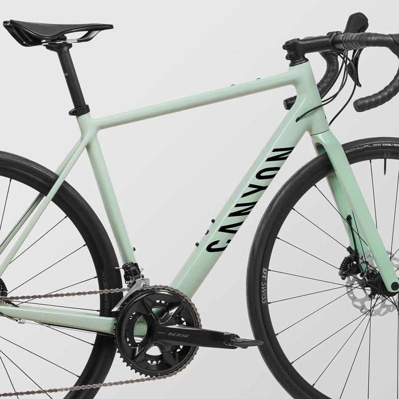 Canyon Endurace 7 es una bicicleta de carretera con cuadro de aluminio y horquilla de carbono. El montaje integra transmisión Shimano 105 de 12 velocidades con doble plato y frenos de disco hidráulicos Shimano. La configuración incluye manillar curvo de carretera, tija de sillín, sillín, juego de ruedas para cubierta, neumáticos de carretera y ejes pasantes. El cuadro pertenece a la serie Endurace de Canyon y utiliza una plataforma de carretera con freno de disco. La bicicleta incorpora los elementos principales del sistema de rodadura, frenado y cambio: cuadro, horquilla, dirección, bielas, cassette, cadena, desviador delantero, cambio trasero, manetas de freno y cambio, pinzas de freno y ruedas. Corresponde a la categoría de bicicleta de carretera para circulación sobre asfalto y uso con componentes de ciclismo de carretera compatibles con su montaje.