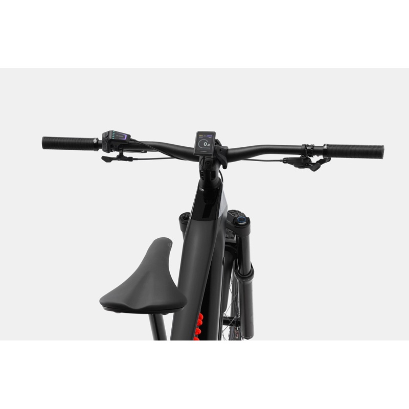 La Cannondale Bicicleta Eléctrica MTB Moterra Neo Carbon LT 2 750 Wh es una bicicleta eléctrica de montaña de doble suspensión con cuadro Moterra Neo Carbon y batería Bosch PowerTube de 750 Wh integrada en el tubo diagonal. Equipa un motor Bosch Performance Line CX de 250 W dentro del sistema Bosch Smart System. La suspensión dispone de 170 mm de recorrido delantero y 165 mm de recorrido trasero. Monta transmisión de 12 velocidades y frenos de disco hidráulicos. La configuración de ruedas combina 29 pulgadas en la parte delantera y 27,5 pulgadas en la trasera. El sistema de asistencia es al pedaleo y la batería forma parte del conjunto eléctrico Bosch. La estructura incorpora guiado interno de cables y la plataforma Moterra Neo Carbon está diseñada como bicicleta MTB eléctrica de recorrido largo con suspensión delantera y trasera.