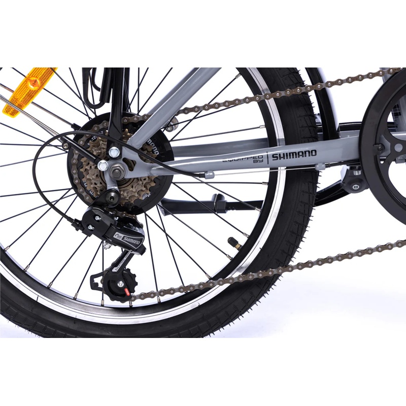 La Moma Bikes Fold 20 7 Velocidades es una bicicleta plegable con cuadro de aluminio 7005 y ruedas de 20 pulgadas. Monta una transmisión Shimano de 7 velocidades con cambio trasero. El sistema de frenado utiliza frenos V-Brake en ambas ruedas. El cuadro integra un mecanismo de plegado y el conjunto incorpora pedales plegables. La denominación del modelo corresponde a una configuración con estructura plegable, rueda de 20 pulgadas y transmisión de 7 velocidades dentro de la gama Fold de Moma Bikes.
